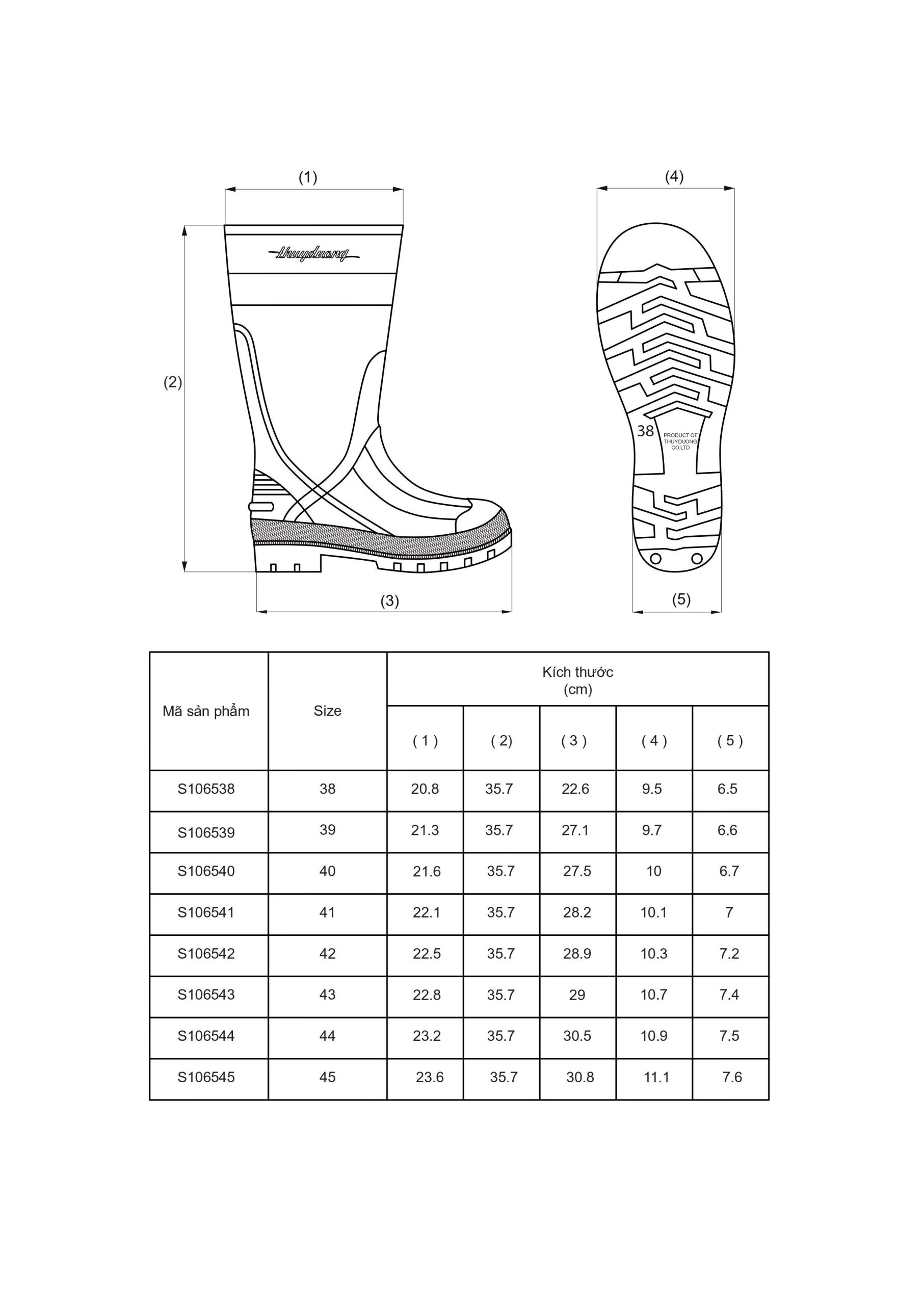- Chiều dài ủng: 380mm